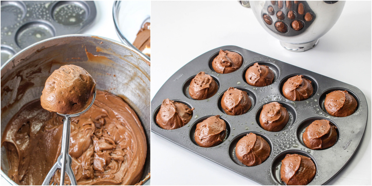 - Scoop the batter (about 1/4 cup portions) onto the prepared baking sheets or whoopie pie pan.