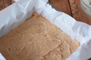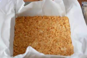 Press into the bottom of the lined pan. Refrigerate for about 5 minutes.