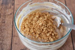 Top with crushed cookies, pressing down gently. Place in the refrigerator for about 20 minutes.