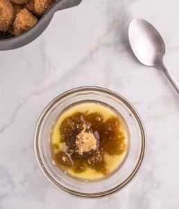 In a small bowl, mix together the melted butter, brown sugar, and maple syrup until well combined.