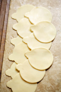 Unroll the refrigerated pie crust and place on a solid, non-stick surface. Use a cookie cutter to cut out approximately 12 circles.