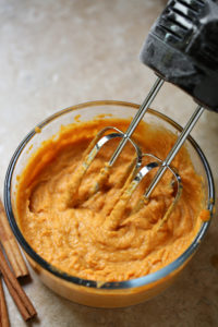 Combine all ingredients besides the pie crust in a medium-sized bowl. Blend thoroughly using a hand blender or a stand mixer. Set aside.